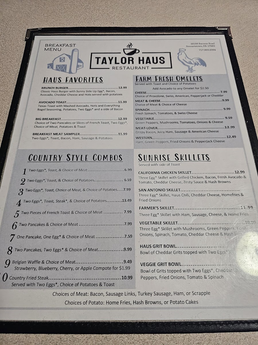 Welcome to Taylor Haus Family Restaurant, an inviting gem nestled in the heart of Stewartstown, PA. Emphasizing a no-frills, local dining experience, this restaurant embodies community spirit. It’s the perfect spot to enjoy hearty meals that feel like home.